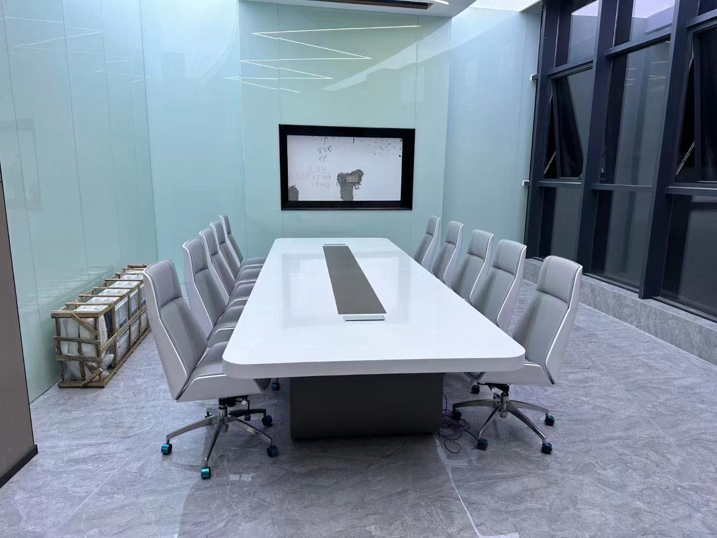 空間適配:?根據(jù)會(huì)議室的大小選擇合適的會(huì)議桌尺寸。?測(cè)量會(huì)議室的空間,?確保會(huì)議桌能夠舒適地放置,?并留出足夠的過(guò)道空間,?方便人員走動(dòng)和交流。